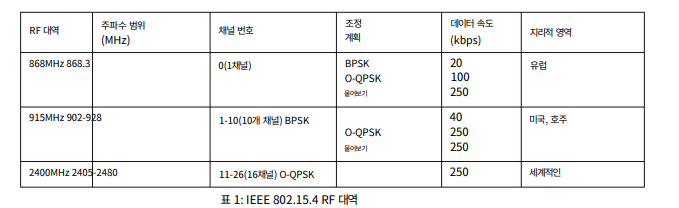 IEEE 802.15.4 1. 정의 IEEE 802.15.4 란 802.15.4 표준은 다음을 포함하는 기존 무선 네트워크 표준이 남긴 틈새를 채우기 위해 IEEE에 의해 도입되었습니다. IEEE 802.15.1 : Bluetooth는 점대점 통신을 위한 비교적 저 전력, 저속 무선 네트워크 기술 IEEE 802.15.3 : 고속 WPAN(Wireless Personal Area Network) 핵심 기능 이 표준의 핵심 기능은 매우 낮은 전력 소비에 대한 요구 사항입니다. 이 엄격한 전력 요구 사항에 대한 동기는 케이블 연결이 전혀 없는(네트워크 또는 전원 케이블 없음) 배터리 전원 네트워크 장치의 사용을 가능하게 하여 쉽고 저렴하게(비용이 많이 드는 케이블 설치가 필요 없음) 가능하면 케이블을 설치하..