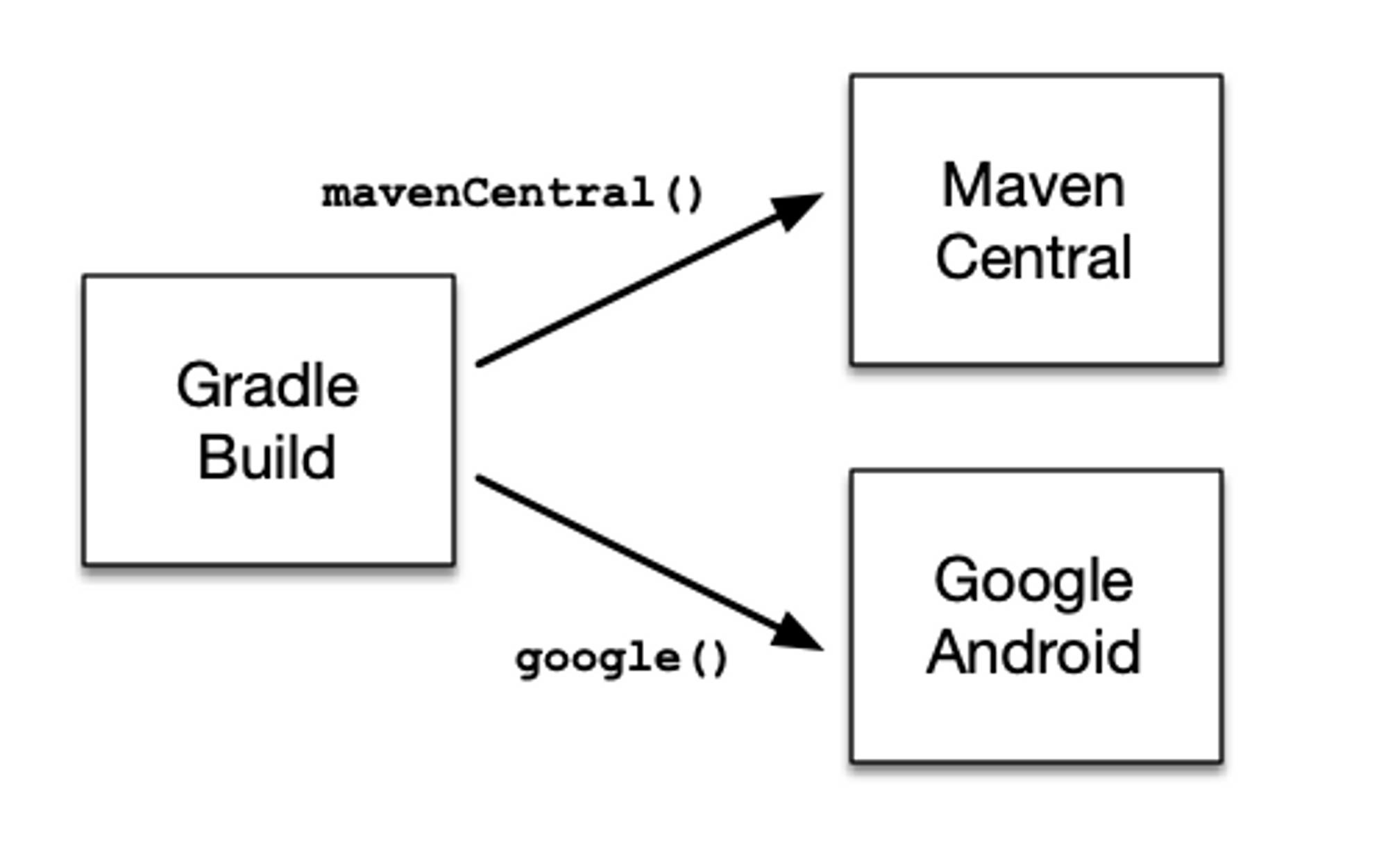Repository 선언 Declaring repositories Declaring repositories When searching for a module in a repository, Gradle, by default, checks for supported metadata file formats in that repository. In a Maven repository, Gradle looks for a .pom file, in an ivy repository it looks for an ivy.xml file and in a flat directory r docs.gradle.org Gradle 빌드는 대표적으로 MavenCentral 과 Google Android 공개된 Repository에 접근..